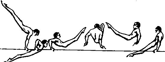 加藤双杠中难度动作之一。是由日本选手加滕泽男首先在1972年第20届奥运会体操比赛中完成的,被国际体联命名为“加藤”,我国体操界惯称“加藤小跳”。一般由大幅度的支撑前摆开始,经屈臂前摆,当身体摆过杠下垂直部位后,加速摆腿同时用力撑杠顶肩推离杠面,使身体有短暂的腾起。使身体保持大于90°的自然后倾屈体状态水平转体180°,双手同时再握并挺伸双腿成支撑。初学时,要首先完成大幅度的屈臂支撑前后摆动,并练习前摆有瞬间腾起动作而再握杠,其次可练习屈臂前摆跳转体180°成挂臂。保护者站在转体方向的另一侧杠外,当练习者屈臂前摆时,一手托臀,另一手托腿帮助前摆有瞬间腾起。转体180°后保护者一手托腿,另一手托背以防跌下。